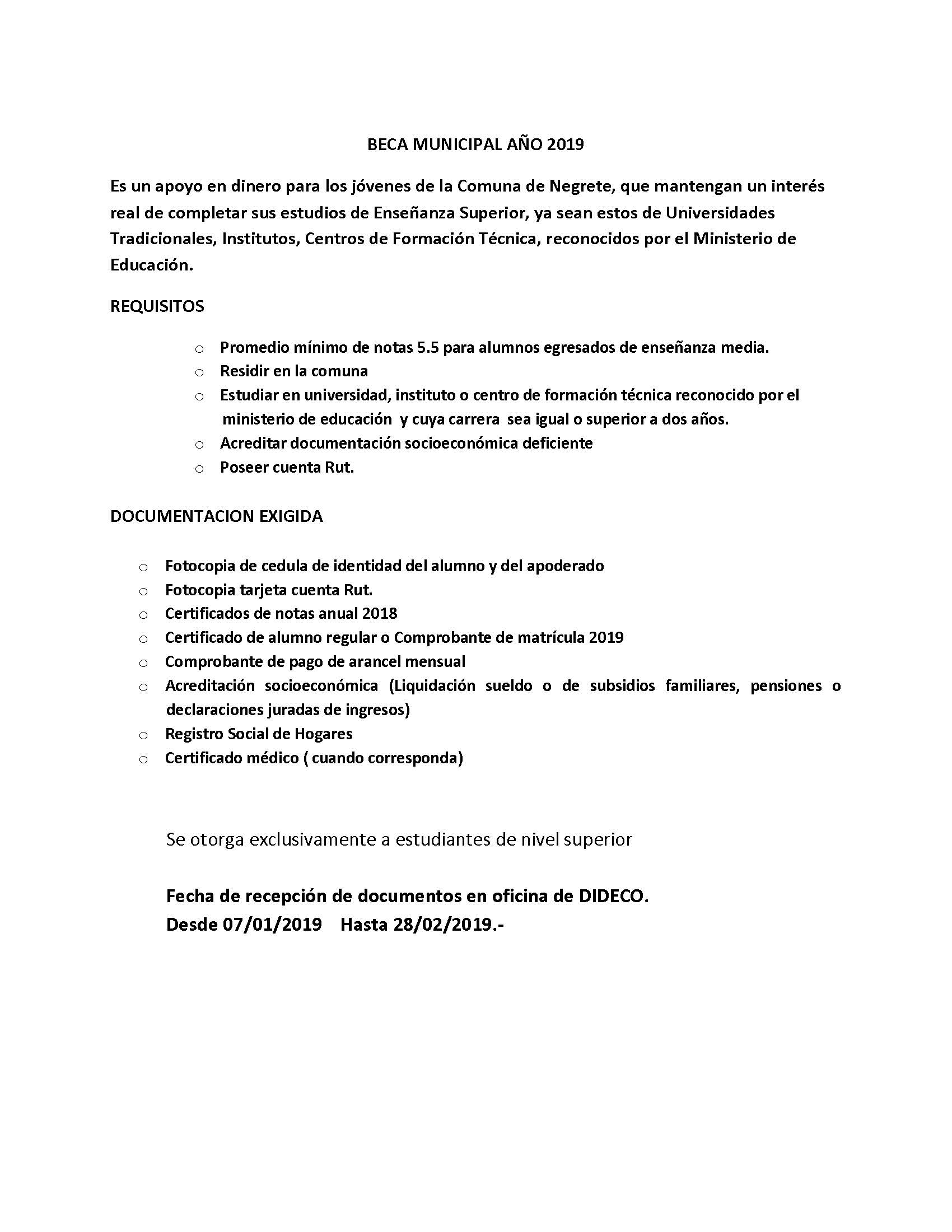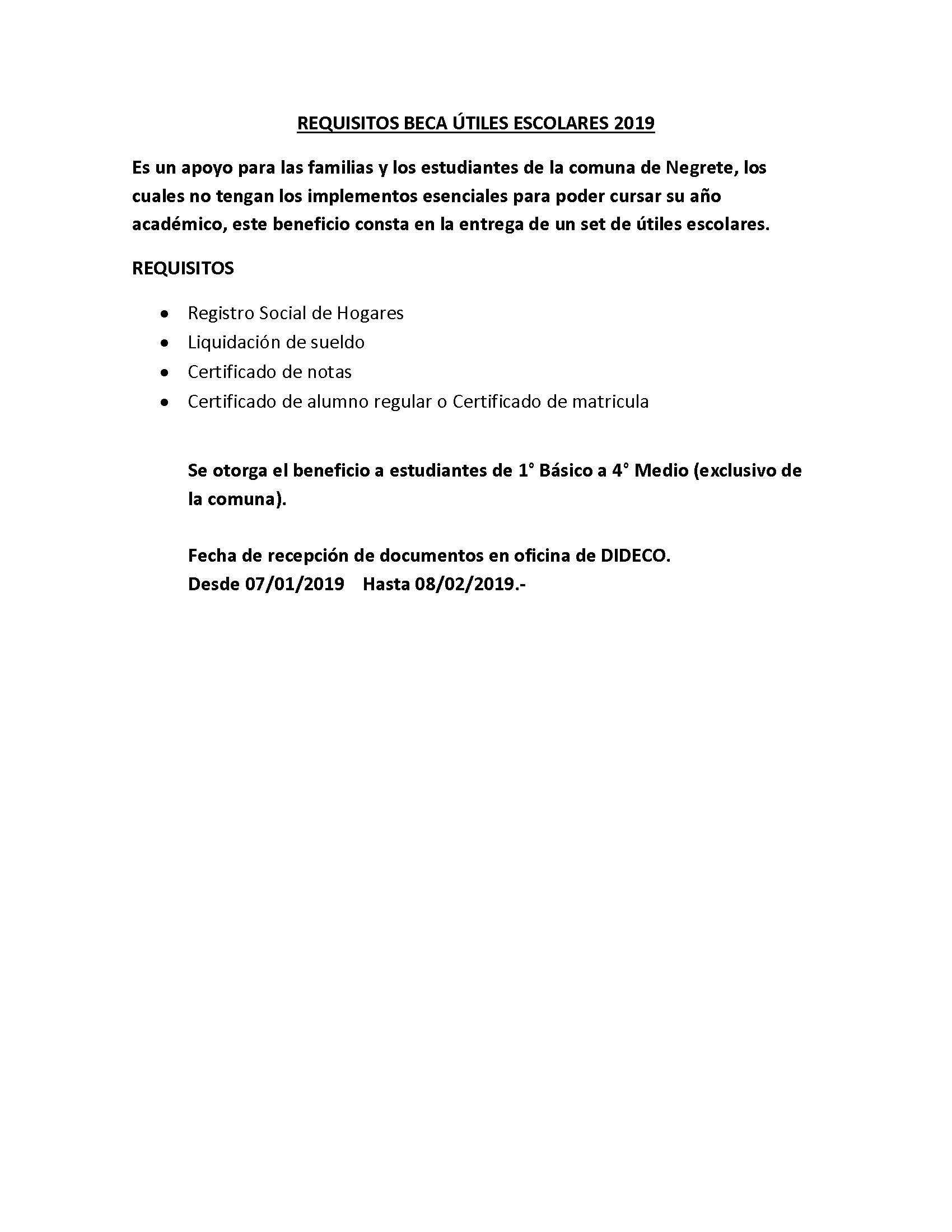 Presentamos las bases con los requisitos para postular a la Beca Municipal (exclusivo para estudiantes de Educación Superior) y Beca de Útiles Escolares 2019 (exclusivo a estudiantes de 1° básico a 4° medio).