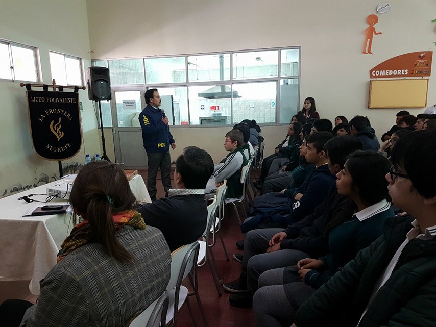 En dependencias del Liceo Polivalente “La Frontera”, y gracias a la gestión del alcalde, Francisco Melo Márquez, a través del Departamento de Educación y de la Oficina de Seguridad, se realizó el lanzamiento provincial de la campaña contra el femicidio 2018. La exposición estuvo a cargo de la Policía de Investigaciones (PDI) y fue dirigida, en primera instancia, a alumnos de 1° a 4° medio, y luego a apoderados y dirigentes de organizaciones sociales.